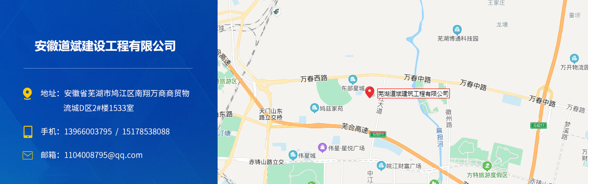 安徽道斌建設工程有限公司成立于2018年4月,主要從事工程施工、工程勞務、鋼結構施工、市政公用施工,市政施工總承包貳級、地基基礎工程專業承包貳級、防水防腐保溫工程專業承包壹級、鋼結構工程專業承包貳級、建筑裝修裝飾工程專業承包貳級、建筑工程施...